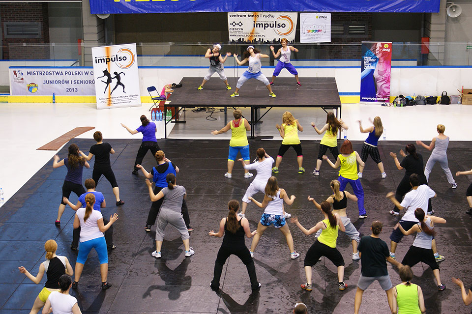 Piękne słoneczne niedzielne popołudnie 19.05.2013 nie zniechęciło grupy miłośniczek i miłośników tańca, ruchu i dobrej zabawy aby przybyć na taneczną imprezę Cieszyn Tańczy na Hali Widowiskowo-Sportowej im. Cieszyńskich Olimpijczyków. Instruktorzy CTiR Impulso pokazali co potrafią i jak można dobrze się bawić, a jednocześnie aktywnie spędzać czas. Sylwia , Dawid, oraz zaproszony Gość Specjalny - Patrycja Porczyńska wraz ze swoimi Pszczyńskimi Zumbiarkami wnieśli olbrzymią dawkę żywiołowego, pełnego radości tańca. Nie zabrakło nawet zbójnickiego! Na koniec Tahira pokazała nam jak można pięknie poruszać się w rytm utworów Shakiry. Miejmy nadzieję, że jest to pierwsza z cyklu imprez, które porwą Cieszyn do tańca. Dziękujemy bardzo Dyrekcji MOSIR-u za udostępnienie miłośnikom tańca i fitness swojej Hali z tak doskonałym nagłośnieniem.