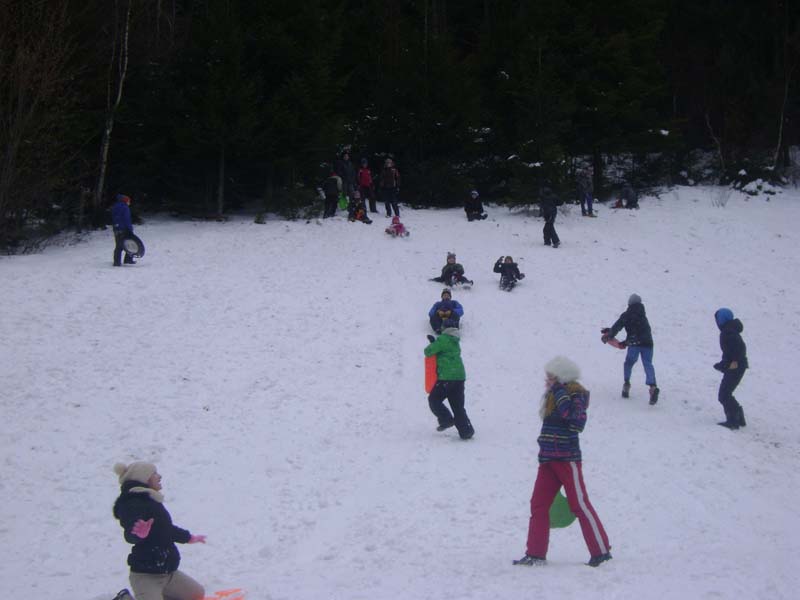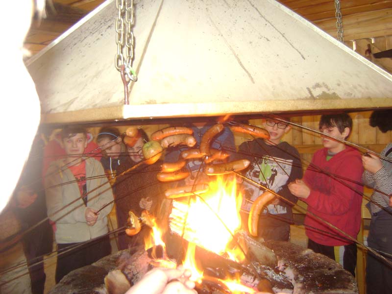 Mogliśmy podziwiać uroczą Dolinę Białej Wisełki, przez którą pędziliśmy saniami. Zmarznięci i głodni następnie odpoczęliśmy w drewnianej kolibie, gdzie piekliśmy kiełbaski. Najlepszym momentem naszego wyjazdu okazał się jednak ostatni etap wycieczki, a mianowicie harce na śnieżnej górce. Zimowe zabawy przypadły do gustu nie tylko uczniom…