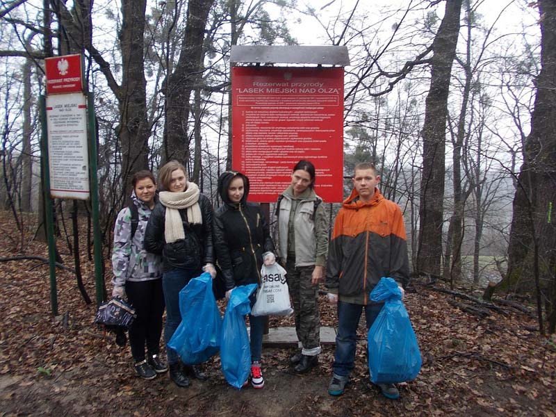W akcji wzięły udział trzy grupy, którym deszcz nie przeszkadzał – wraz z członkami Komisji Ochrony Przyrody i opiekunami, uczniowie z ZSEG sprzątali Lasek Miejski nad Olzą oraz zespół przyrodniczo-krajobrazowy Lasek w Błogocicach, młodzież z ZSP im W. Szybińskiego – teren parkowy i przygarażowy przy osiedlu ZOR oraz Lasek Miejski nad Puńcówką, a uczniowie z Gimnazjum nr 2 – teren parkowy przy ul. Liburnia i Czarnym Chodniku.