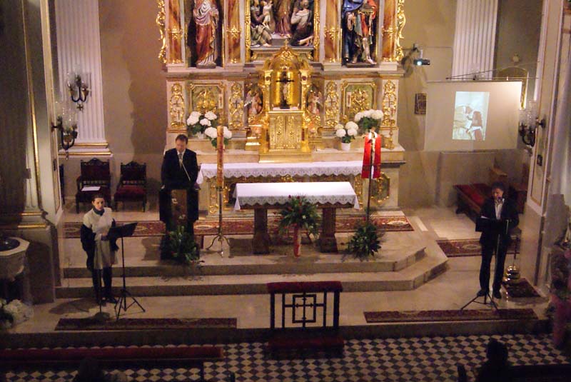 Fragmenty poezji, dramatów i rozważań Jana Pawła II recytowali aktorzy Sceny Polskiej Teatru w Czeskim Cieszynie – Anna Paprzyca, Tomasz Kłaptocz i – reżyserujący całość - Bogdan Kokotek.