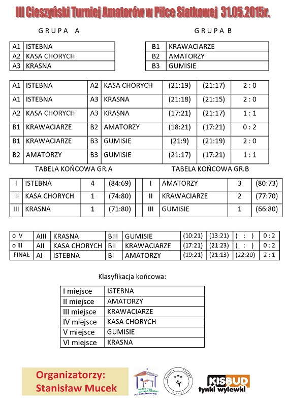Zwyciężyła drużyna Istebna, drugie miejsce zajęli Amatorzy, a trzecie Krawaciarze. Na tym zakończył się cykl trzej turniejów i w łącznej klasyfikacji najlepszą okazała się drużyna Kasy Chorych.
