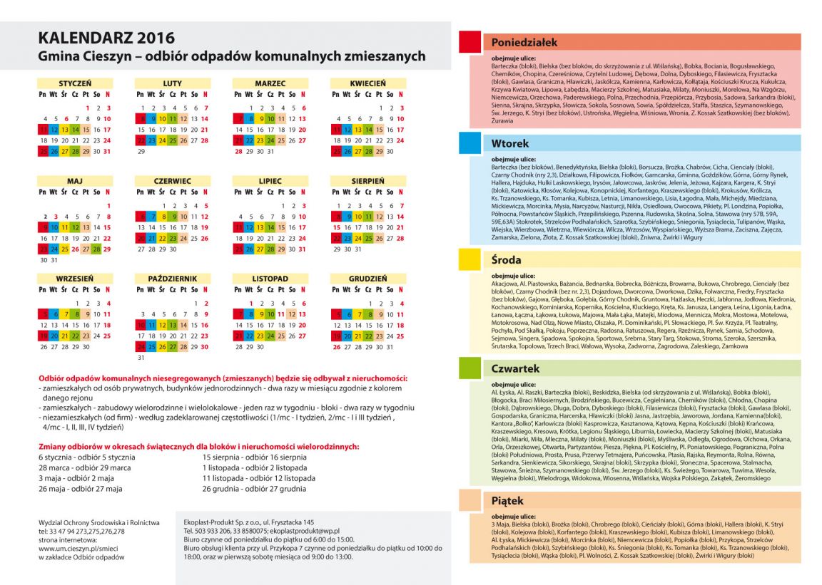 Odbiór odpadów posegregowanych oraz odpadów zmieszanych - Gmina Cieszyn.