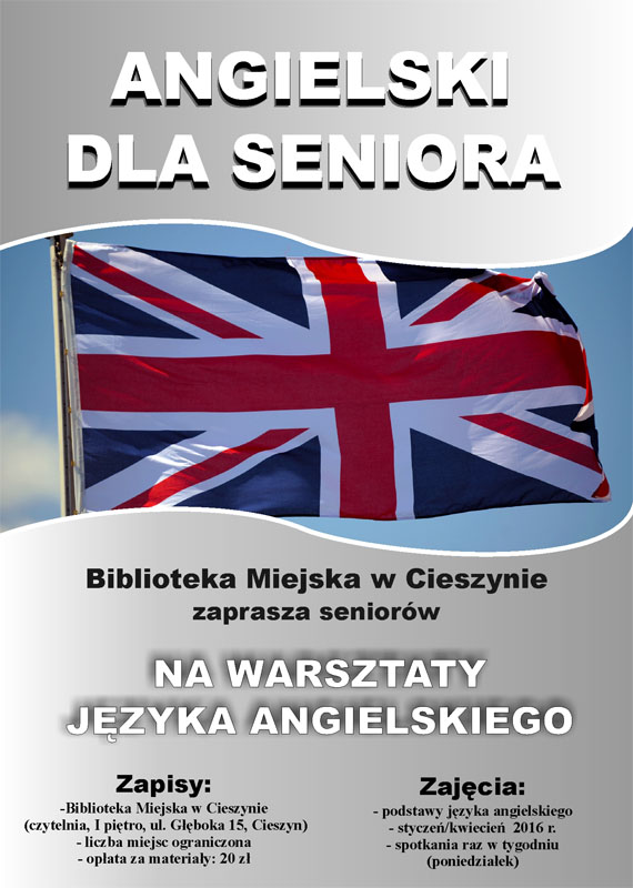 Kurs „Angielski dla seniora 55+” trwać będzie 3 miesiące, spotkania odbywać będą się w poniedziałki. Pierwsze zajęcia odbędą się 25 stycznia br. o godz. 10.30.