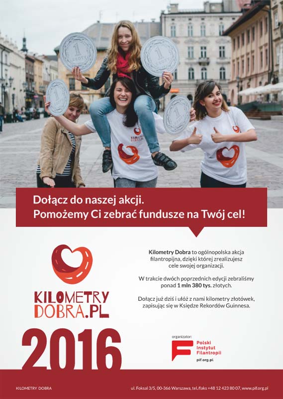 Więcej informacji w załączonej ulotce lub na stronie: www.kilometrydobra.pl.
