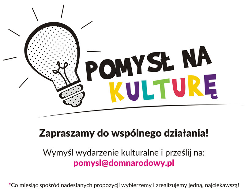 Wymyśl wydarzenie kulturalne, opisz i prześlij e-mailem: pomysl@domnarodowy.pl.