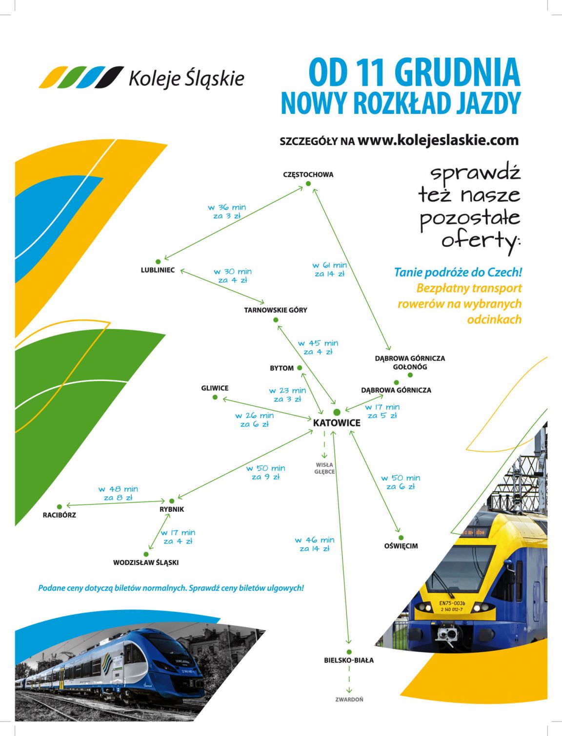 Bezpośredni pociąg Cieszyn – Katowice to największa nowość rozkładu jazdy pociągów, który wejdzie w życie w niedzielę 11 grudnia. Zwiększy się również liczba połączeń międzynarodowych z Cieszyna do Frydka-Mistka.