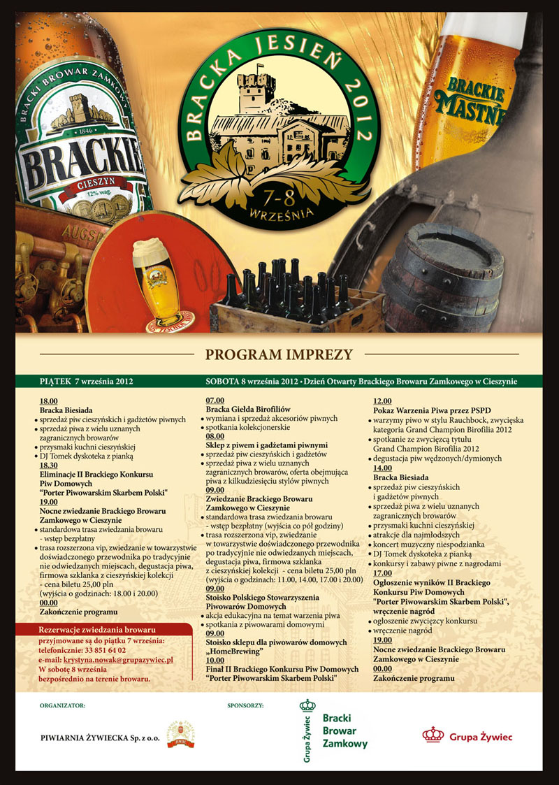 | Organizator | Bracki Browar Zamkowy - tel: 33) 851 64 00 |