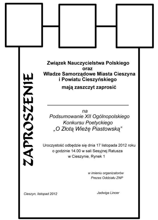 XII Ogólnopolski Konkurs Poetycki "O Złotą Wieżę Piastowską"