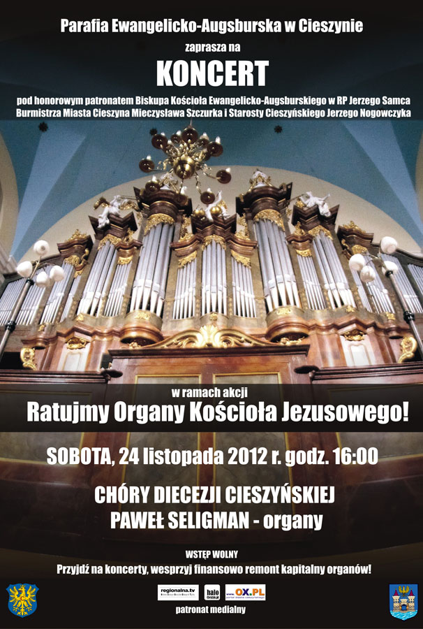 Parafia Ewangelicko-Augsburska w Cieszynie zaprasza na kolejny, VIII koncert w ramach akcji "Ratujmy Organy Kościoła Jezusowego"