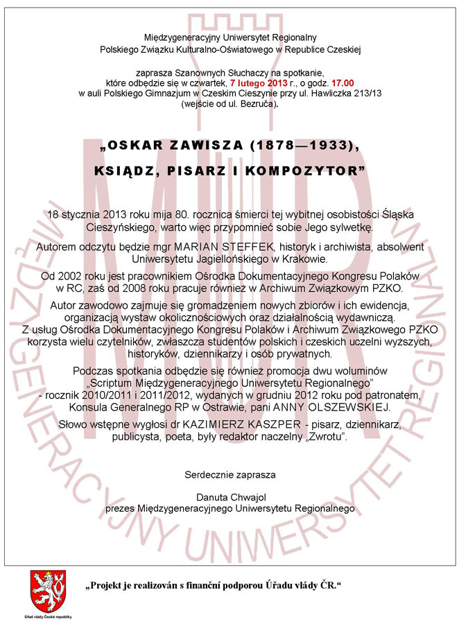| Organizator | Międzygeneracyjny Uniwersytet Regionalny Polskiego Związku Kulturalno Oświatowego w RC |