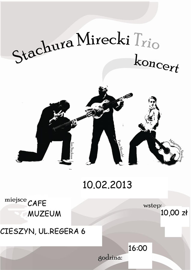 Trio gra szeroko pojętą muzykę akustyczną, na którą składają się przeboje z różnych stron świata.