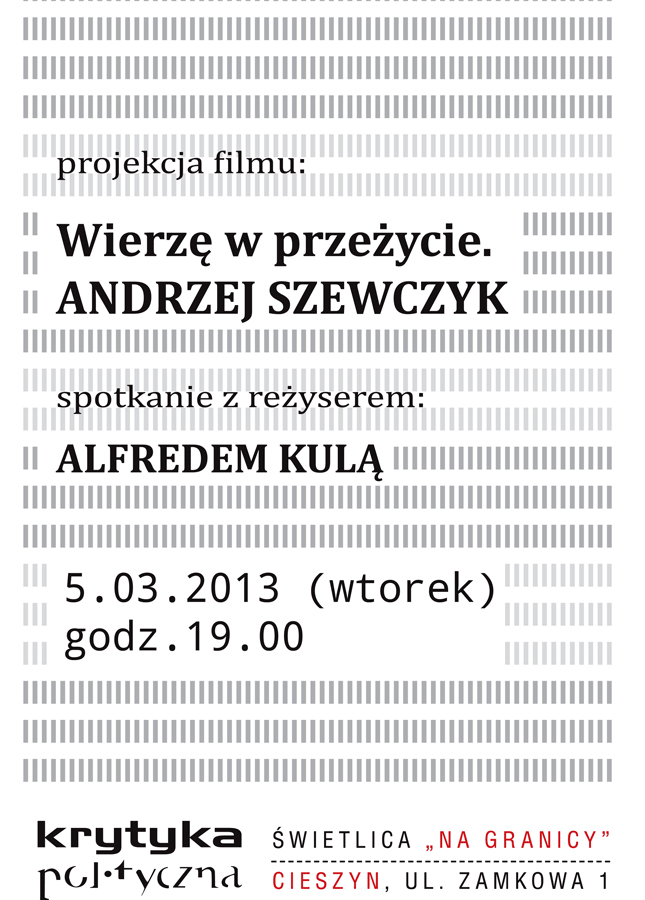 Projekcja filmu Wierzę w przeżycie Andrzej szewczyk