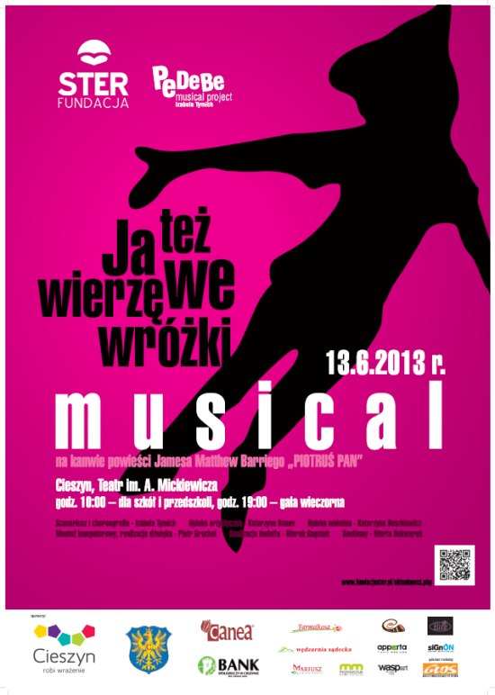 Musical pt. „Ja też wierzę we wróżki” na kanwie powieści Jamesa Matthew Barrie'go „Przygody Piotrusia Pana” oferta dla szkół i starszych przedszkolaków Realizacja: Szkoła Tańca PeDeBe prowadzona przez Fundację STER Teatr im. A.  Mickiewicza w Cieszynie Premiera 13.06.2013r. godz. 10:00 (dla szkół i przedszkoli) Gala wieczorna godz. 19:00