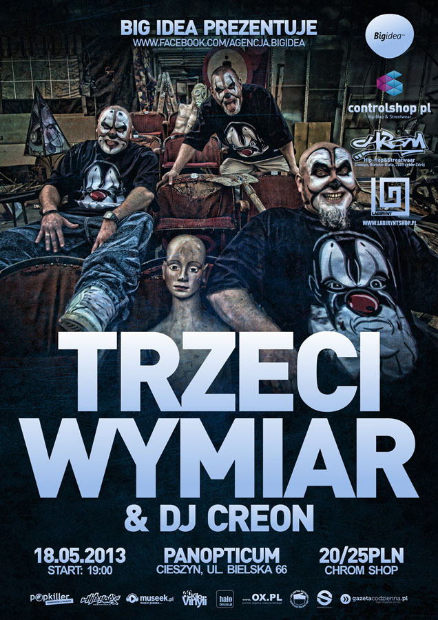 18 maja 2013 roku w klubie studenckim Panopticum po raz pierwszy w Cieszynie wystąpi TRZECI WYMIAR w składzie Szad, Nullo, Pores & DJ Creon! Jeden z najlepszych i najbardziej uznanych zespołów Hip Hopowych w Polsce. Zdobywcy dwóch złotych płyt "Złodzieje czasu" (2009) oraz "Dolina Klaunoow" (2012).