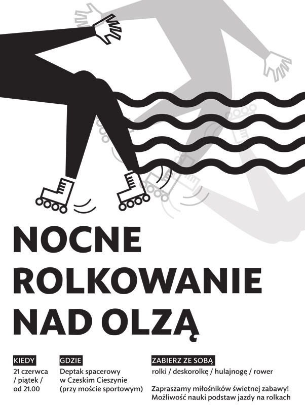 Zapraszamy mieszkańców obydwu brzegów Olzy, którzy lubią spędzać czas aktywnie jeżdżąc na rowerze, rolkach, hulajnodze, deskorolce, wrotkach itp. na deptak spacerowy w Czeskim Cieszynie (przy moście sportowym).Wspólnie z dziećmi ze Świetlicy Krytyki Politycznej, ich rodzicami, przyjaciółmi i mieszkańcami Cieszyna i Czeskiego Cieszyna chcemy przywitać lato w sposób niekonwencjonalny. Pomysłodawcą akcji jest były strażnik Straży Granicznej pracujący w przeszłości w budynku Przejścia Granicznego "Most Przyjaźni" w Cieszynie.