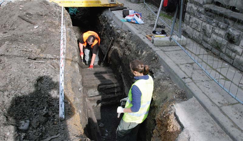 Na ul. Olszaka odkopano fragment średniowiecznej nawierzchni drogi oraz inne drewniane elementy konstrukcyjne studni bądź dołu kloacznego. Znaleziska zostaną poddane dokładnym badaniom – archeolodzy są w stanie określić m.in. rok ścięcia drzew użytych przez naszych przodków.