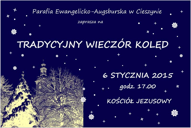 Parafia Ewangelicko-Augsburska zaprasza na Tradycyjny Wieczór Kolęd, podczas którego wystąpią chóry działające w parafii: