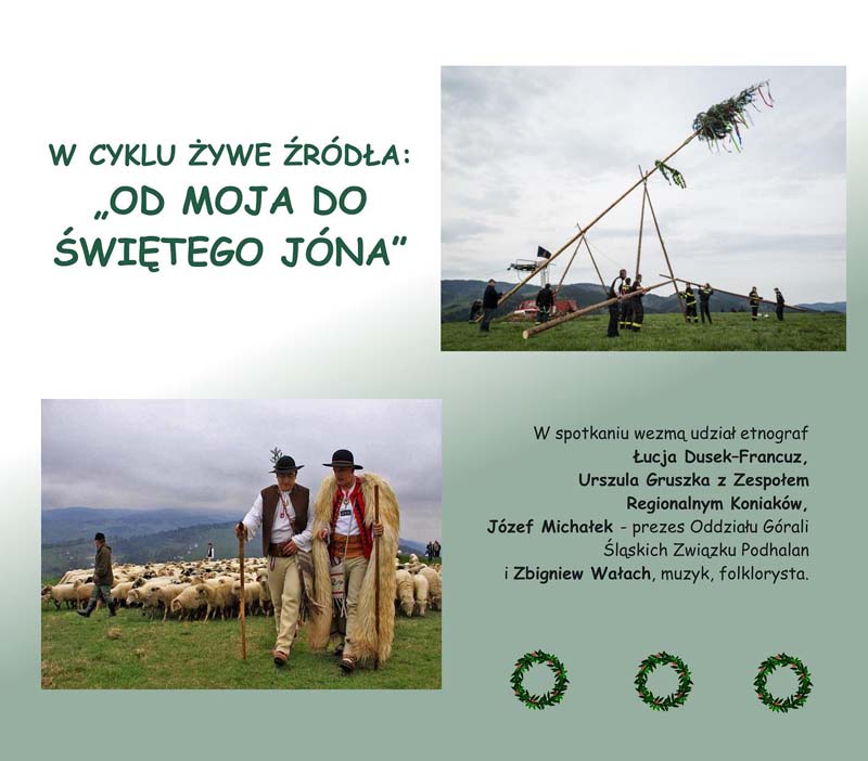 W spotkaniu wezmą udział etnograf Łucja Dusek–Francuz, Urszula Gruszka z Zespołem Regionalnym Koniaków, Józef Michałek (prezes Oddziału Górali Śląskich, Związku Podhalan) i Zbigniew Wałach, muzyk, folklorysta.