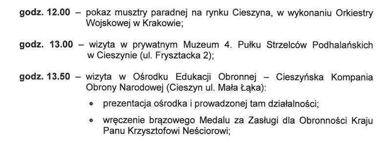 We wtorek 11 sierpnia Cieszyn odwiedzi wiceminister obrony narodowej pan Maciej Jankowski.