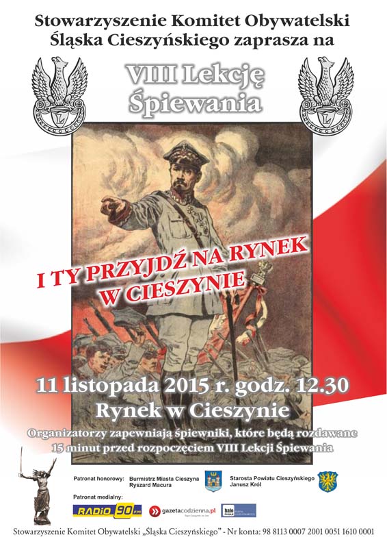 Stowarzyszenie Komitet Obywatelski Śląska Cieszyńskiego zaprasza na VIII Lekcję Śpiewania.