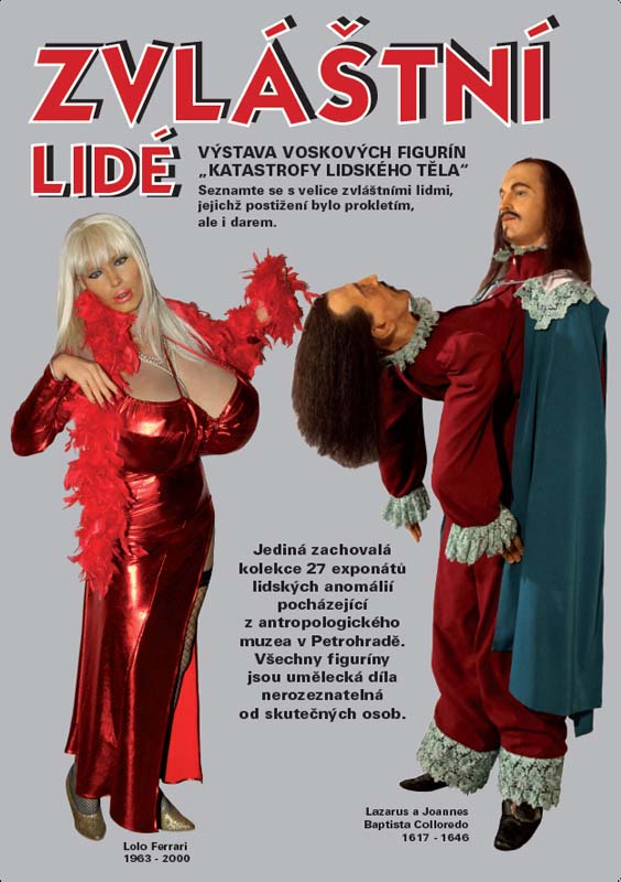 Przedstawiamy Państwu 27 figur woskowych będących odwzorowaniem autentycznych osób, których wygląd był wybrykiem natury. Ci autentyczni ludzie ze swojego wyglądu zrobili sposób na życie i zarabiali dzięki niemu często niemałe pieniądze. Od czasów starożytnych prezentowano w najróżniejszych cyrkach i panoptikach osoby o wyjątkowym wyglądzie będącym następstwem wad genetycznych i powikłań ciążowych. Takie wystawy cieszyły się dużą popularnością.