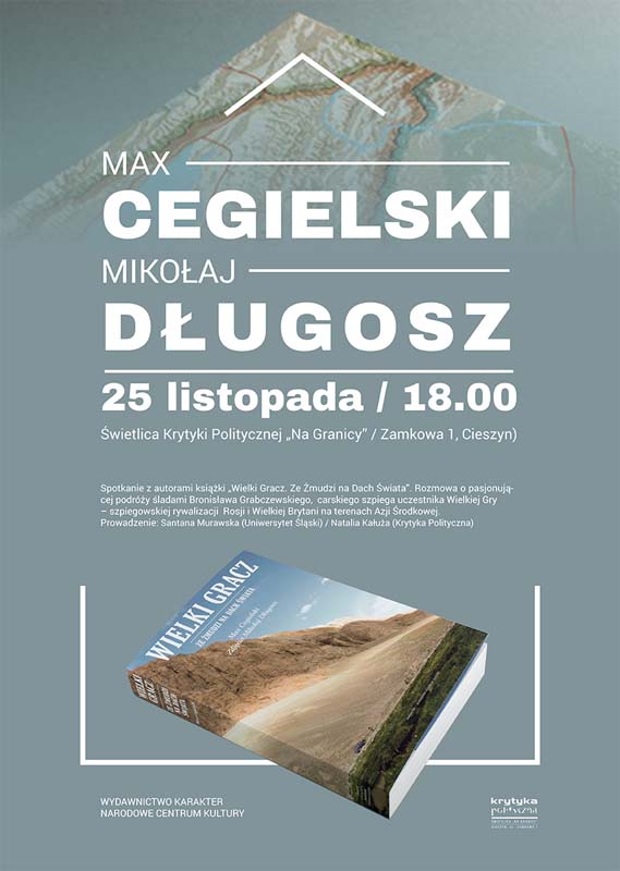 Księgarnia „Na Granicy”, Wydawnictwo Karakter oraz Narodowe Centrum Kultury w Warszawie zapraszają na spotkanie z Maxem Cegielskim oraz Mikołajem Długoszem wokół ich najnowszej książki „Wielki gracz. Ze Żmudzi na Dach Świata” (Wydawnictwo Karakter, Narodowe Centrum Kultury w Warszawie).