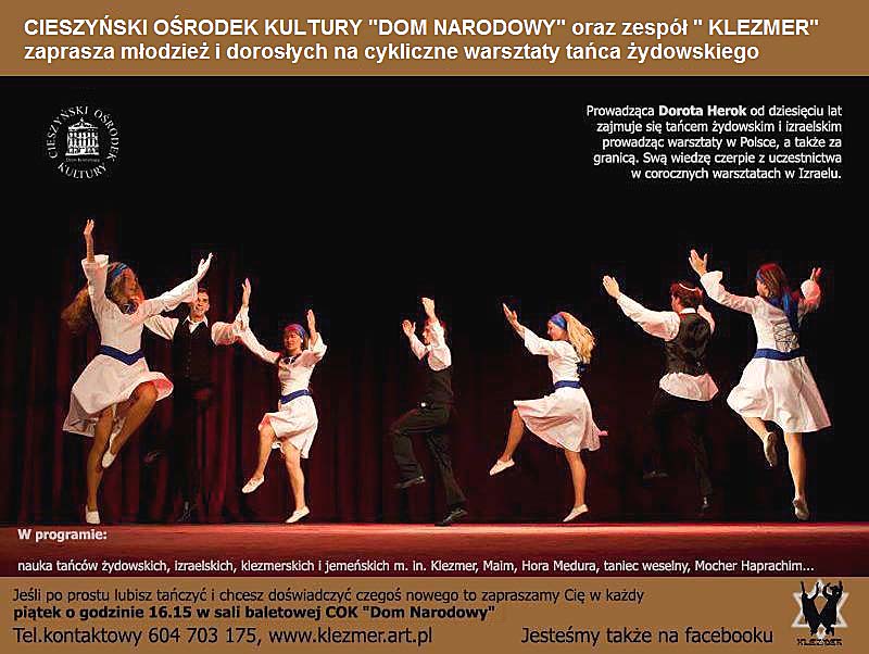 Zapraszamy także wszystkich chętnych do zespołu tańca żydowskiego i izraelskiego "Klezmer" w każdy piątek godz. 18.00. Więcej informacji pod tel. 33 851 25 20 lub 604 703 175.