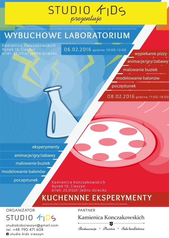 | Uwagi | Dane kontaktowe organizatora: +48 790-471-608, email: studiokidscieszyn@gmail.com |