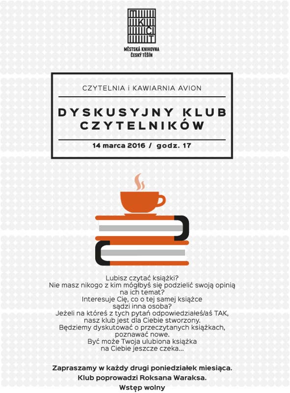 Zapraszamy w każdy drugi poniedziałek miesiąca. Klub poprowadzi Roksana Waraksa. Wstęp wolny.