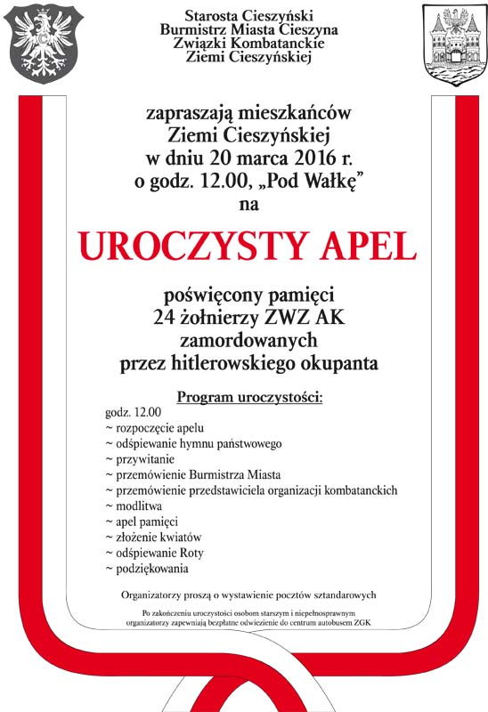 Organizator Miasto Cieszyn, Związki Kombatanckie Ziemi Cieszyńskiej