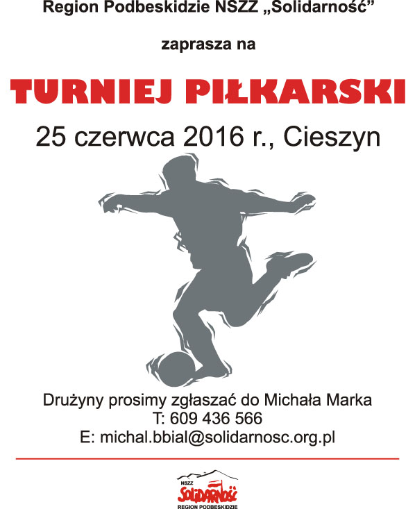 Region Podbeskidzie NSZZ „Solidarność” zaprasza na turniej piłkarski 25 czerwca 2016 r.