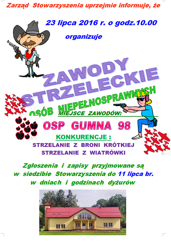 w dniu 23 lipca 2016 r. na Zawody Strzeleckie Osób Niepełnosprawnych w OSP Gumna