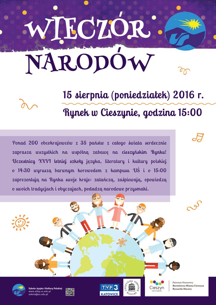 Uczestnicy XXVI letniej szkoły języka, literatury i kultury polskiej o 14:30 wyruszą barwnym korowodem z kampusu UŚ i o 15:00 zaprezentują na Rynku swoje kraje: zatańczą, zaśpiewają, opowiedzą o swoich tradycjach i obyczajach, podadzą narodowe przysmaki.
