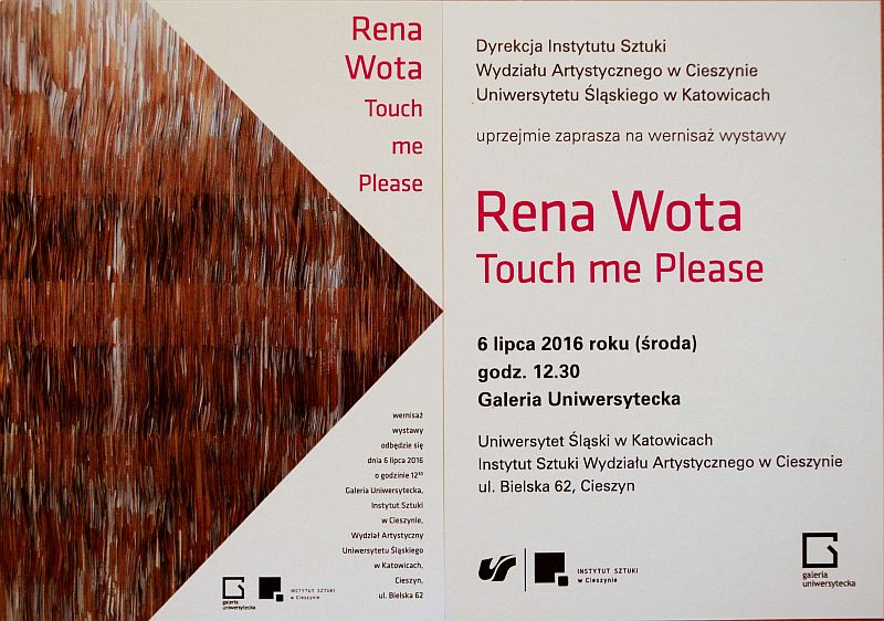 Dyrekcja Instytutu Sztuki UŚ w Cieszynie serdecznie zaprasza do Galerii Uniwersyteckiej na wernisaż wystawy "Rena Wota. Touch me Please", który odbędzie się w środę 6 lipca o godzinie 12.30.