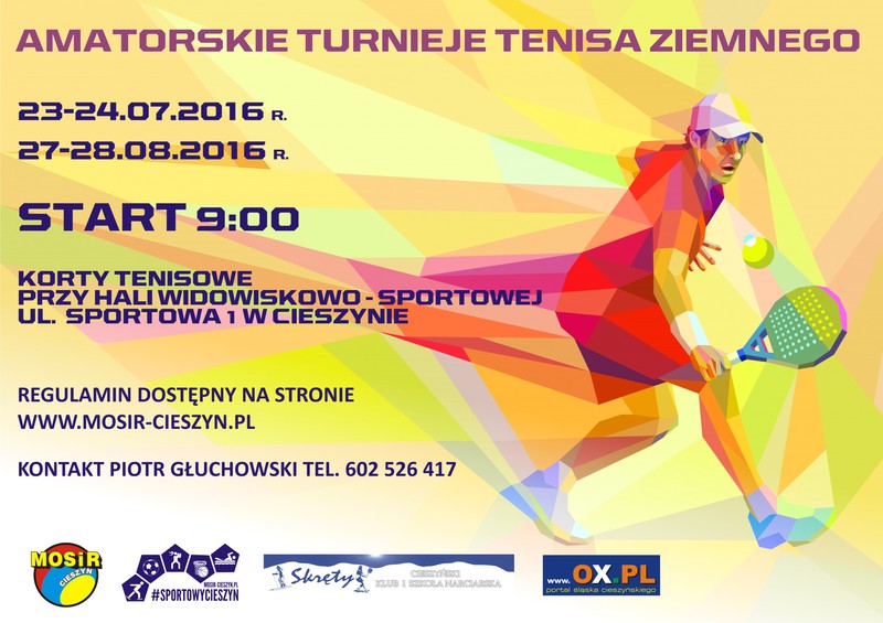 Miejski Ośrodek Sportu i Rekreacji w Cieszynie oraz Cieszyński Klub i Szkoła Narciarska "Skręty" serdecznie zapraszają wszystkich miłośników tenisa ziemnego na Amatorskie Turnieje Tenisa Ziemnego.