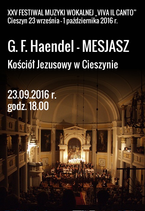 25. edycję Międzynarodowego Festiwalu Muzyki Wokalnej „Viva il canto” w Cieszynie zainuguruje wykonanie oratorium „Mesjasz” Georga Friedricha Haendla w wykonaniu Państwowej Orkiestry Kameralnej Slovak Sinfonietta ilina, Chóru Uniwersytetu Śląskiego „Harmonia” pod kierownictwem Izabelli Zieleckiej-Panek, Akademickiego Chóru Politechniki Śląskiej w Gliwicach pod kierownictwem Tomasza Giedwiłło.