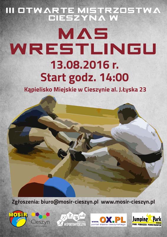 W sobotę 13.08. o godzinie 14:00 na Kąpielisku Miejskim w Cieszynie po raz trzeci odbędą się Otwarte Mistrzostwa Cieszyna w Mas wrestlingu. Mas wrestling to dyscyplina siłowa, która polega na przeciąganiu przez dwóch zawodników pałki w pozycji siedzącej.