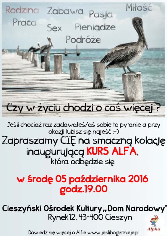 Kurs Alfa to cykl 10 spotkań o Chrześcijaństwie. Ale nie tylko. Alfa to próba spojrzenia na temat wiary z zupełnie innej strony. To wymiana doświadczeń, ciekawi ludzie, zabawa i dyskusje o sprawach, które być może od dawna Cię nurtują.
