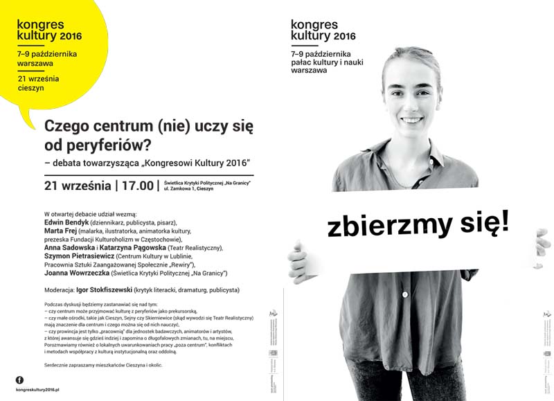Czego centrum (nie) uczy się od peryferiów? – debata w Cieszynie towarzysząca „Kongresowi Kultury 2016”.