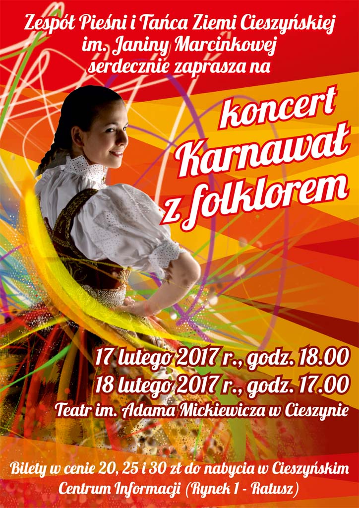 Zespół Pieśni i Tańca Ziemi Cieszyńskiej im. J. Marcinkowej zaprasza na "Karnawał z folklorem".