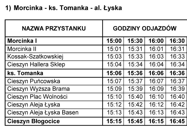 Cieszyn Aleja Łyska - 15:12 | 15:42 | 16:12 | 16:42