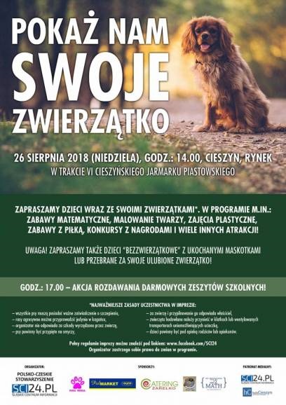 Impreza „Pokaż nam swoje zwierzątko” odbędzie się w najbliższą niedzielę 26 sierpnia o godz. 14:00. Przebiegać będzie podczas Jarmarku Piastowskiego.