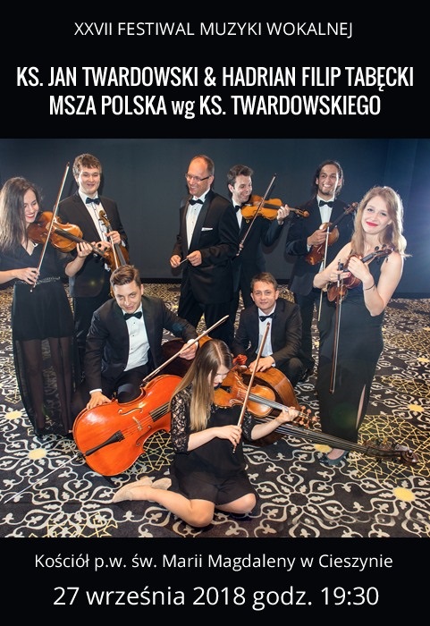 Tegoroczna edycja Viva il canto to trzy różne koncerty. Koncert „Msza Polska według ks. Twardowskiego” rozpocznie tegoroczny festiwal w czwartek 27 września. Odbędzie się w wyjątkowych wnętrzach Kościoła Jezusowego w Cieszynie. Wykonawcami będą: Sądecka Orkiestra Kameralna, wyśmienity i dwukrotnie nagrodzony Fryderykami sekstet wokalny proMODERNJ, Hadrian Filip Tabęcki przy fortepianie oraz dyrygent - Leszek Mieczkowski.