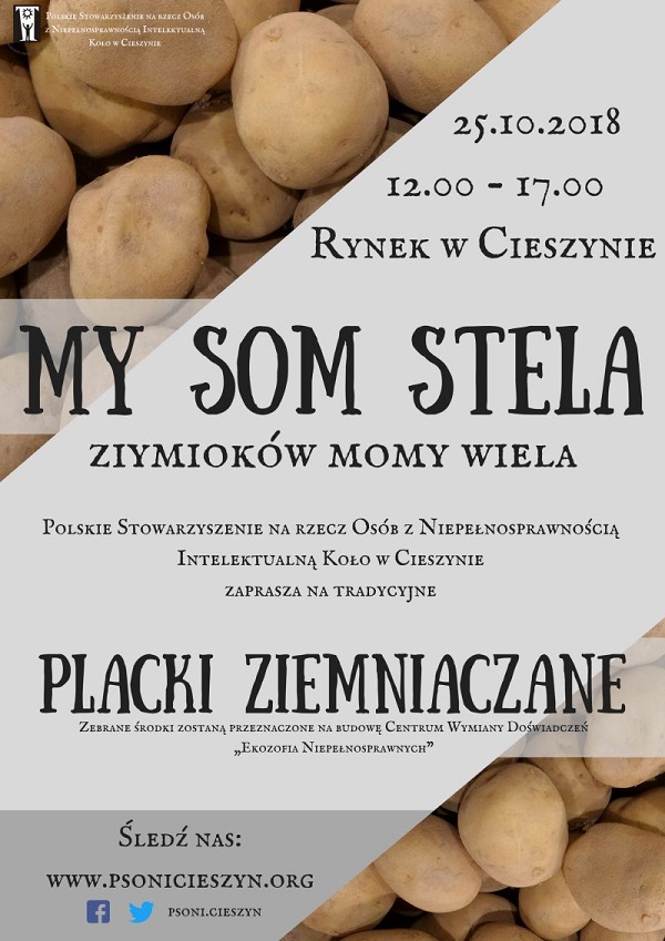 Pieniądze zebrane podczas akcji ;My som stela ziymioków momy wiela;, na której podawane będą tradycyjne placki ziemniaczane, w całości przekazane zostaną na budowę nowego ośrodka dla osób niepełnosprawnych w Bażanowicach - Centrum Kształcenia i Wymiany Doświadczeń ;Ekozofia Niepełnosprawnych;. Bądźcie w ten dzień z nami.