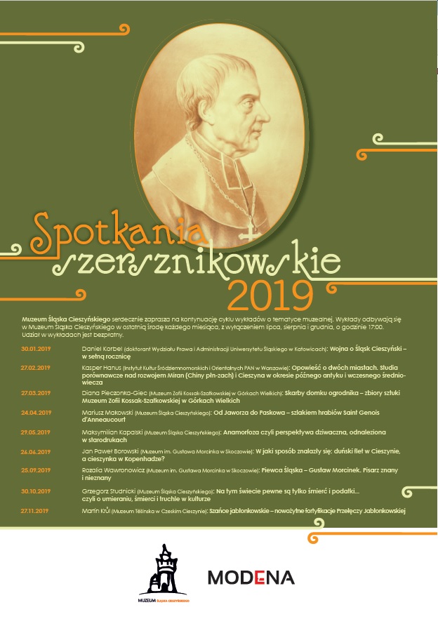 27 listopada 2019 wykład pt. "Szańce jabłonkowskie – nowożytne fortyfikacje Przełęczy Jabłonkowskiej" wygłosi Martin Krl (Muzeum Tąnska w Czeskim Cieszynie).