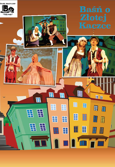 ... to barwna, żywiołowa opowieść muzyczna osnuta na motywach znanej warszawskiej legendy o Złotej Kaczce, żyjącej w podziemiach Starego Miasta. Tytułowa bohaterka to księżniczka, która za swój egoizm została zamieniona w Złotą Kaczkę i żyje w podziemiach miasta strzegąc wielkich skarbów. Janek - czeladnik bednarski, aby spłacić dług swojego majstra, postanawia odnaleźć Złotą Kaczkę i zdobyć skarb. Czy mu się to uda? Jak sobie poradzi z wieloma przeszkodami, tego dowiedziecie się przychodząc na nasz spektakl.