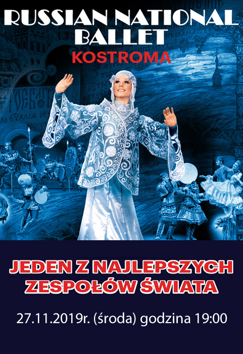 Z wielką przyjemnością mamy zaszczyt poinformować Państwa, że jeden z najlepszych zespołów świata – RUSSIAN NATIONAL BALLLET KOSTROMA ponownie odwiedzi Polskę w listopadzie br.. Po wielkim sukcesie ubiegłorocznych występów zorganizowaliśmy tourne na bis, na Państwa życzenie, bo jak wszyscy pamiętamy, nie dla wszystkich chętnych wystarczyło biletów. Zespół ten to najlepsza wizytówka rosyjskiej sceny na równi z baletem Moisiejewa, Bieriozką i Krasnojarskiem.
