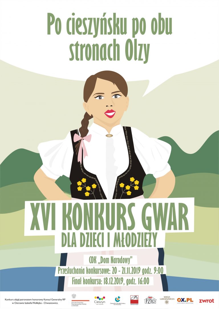 Zachęcamy wychowawców, nauczycieli, pracowników placówek kultury, a także rodziców i dziadków by mobilizowali i włączali się w przygotowanie dzieci i młodzieży szkolnej do uczestnictwa w XVI KONKURSIE GWAR „Po cieszyńsku po obu stronach Olzy”. Konkurs przeznaczony jest dla dzieci, uczniów i młodzieży zamieszkującej historyczną Ziemię Cieszyńską po obu stronach Olzy, w Polsce i Republice Czeskiej.