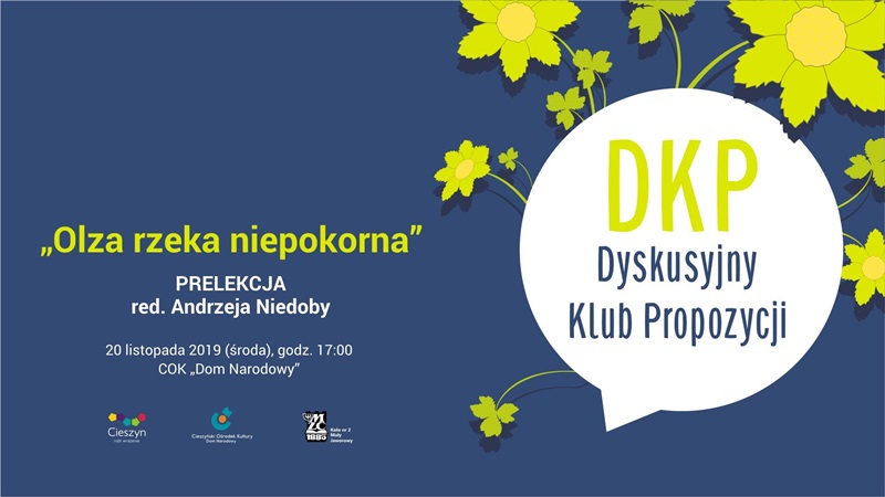 Cieszyński Ośrodek Kultury "Dom Narodowy" - COK zaprasza na kolejne spotkanie z serii Dyskusyjnego Klubu Propozycji, które odbędzie się w środę, 20 listopada w Domu Narodowym!