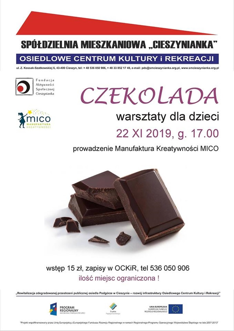 warsztaty odbędą się 22.11.2019 o godz. 17.00 w OCKiR przy ul. Zofii Kossak-Szatkowskiej 6 w Cieszynie. Koszt to 15 zł/osobę
